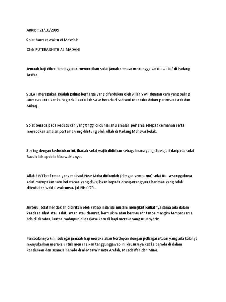 Solat Hormat Waktu Dan Jamak Tamam Pdf